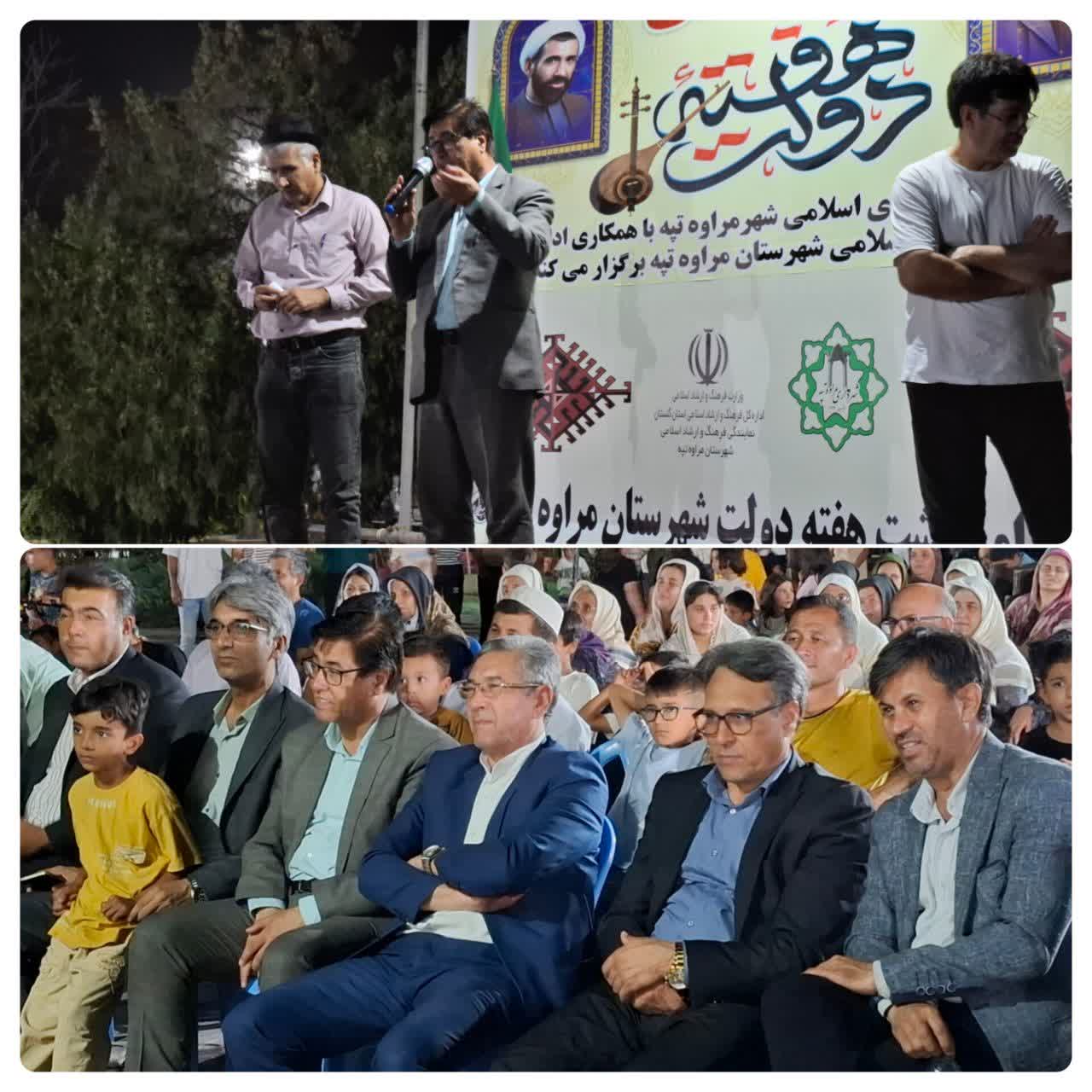 🔻در آخرین روز از هفته دولت مراسم جنگ شادی بمناسبت هفته دولت توسط شهرداری و شورای اسلامی شهر مراوهتپه با همکاری اداره فرهنگ و ارشاد اسلامی شهرستان با حضور معاون سیاسی امنیتی و اجتماعی فرماندار، شهردار ،اعضای شورای اسلامی شهر، ریاست اداره فرهنگ و ارشاد اسلامی، بخشدار بخش مرکزی ، سایر مدیران ادارات شهرستان و اقشار مختلف مردم نجیب مراوهتپه در پارک شهر برگزار شد.