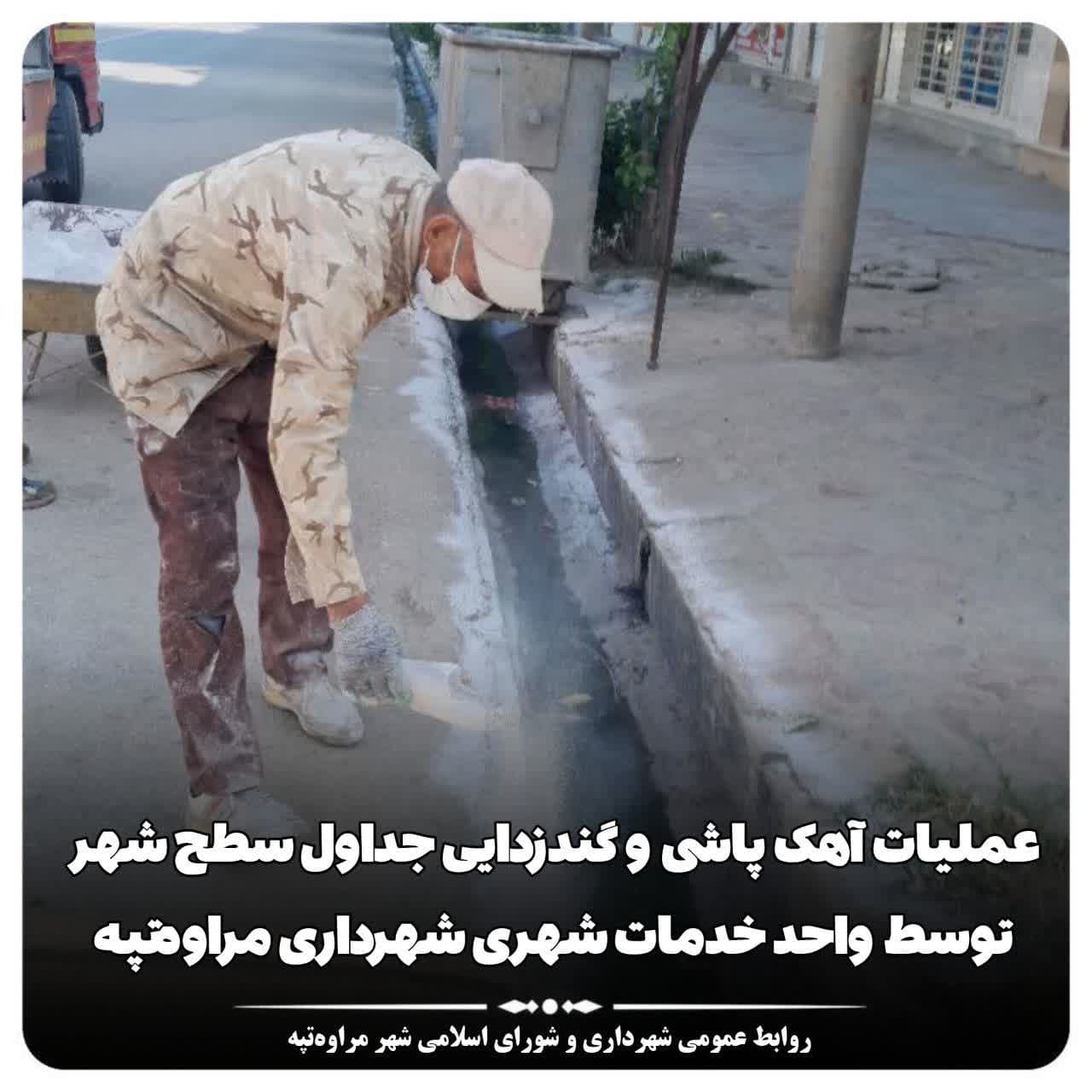🔷عملیات آهک پاشی جداول سطح شهر یا هدف گندزدایی ، مبارزه با حشرات و عوامل بیماری زا توسط واحد خدمات شهری شهرداری مراوه تپه