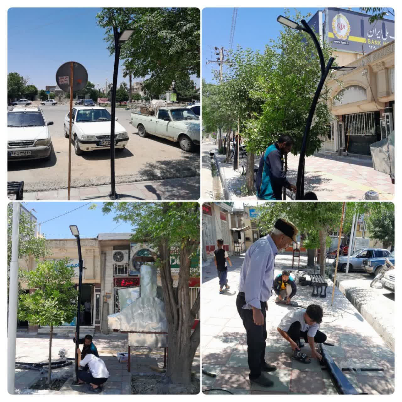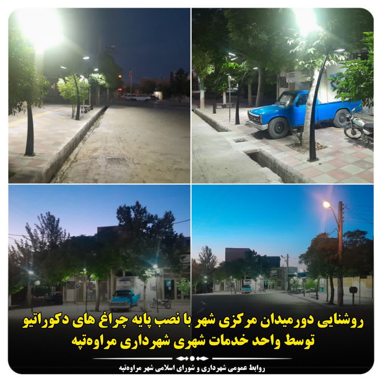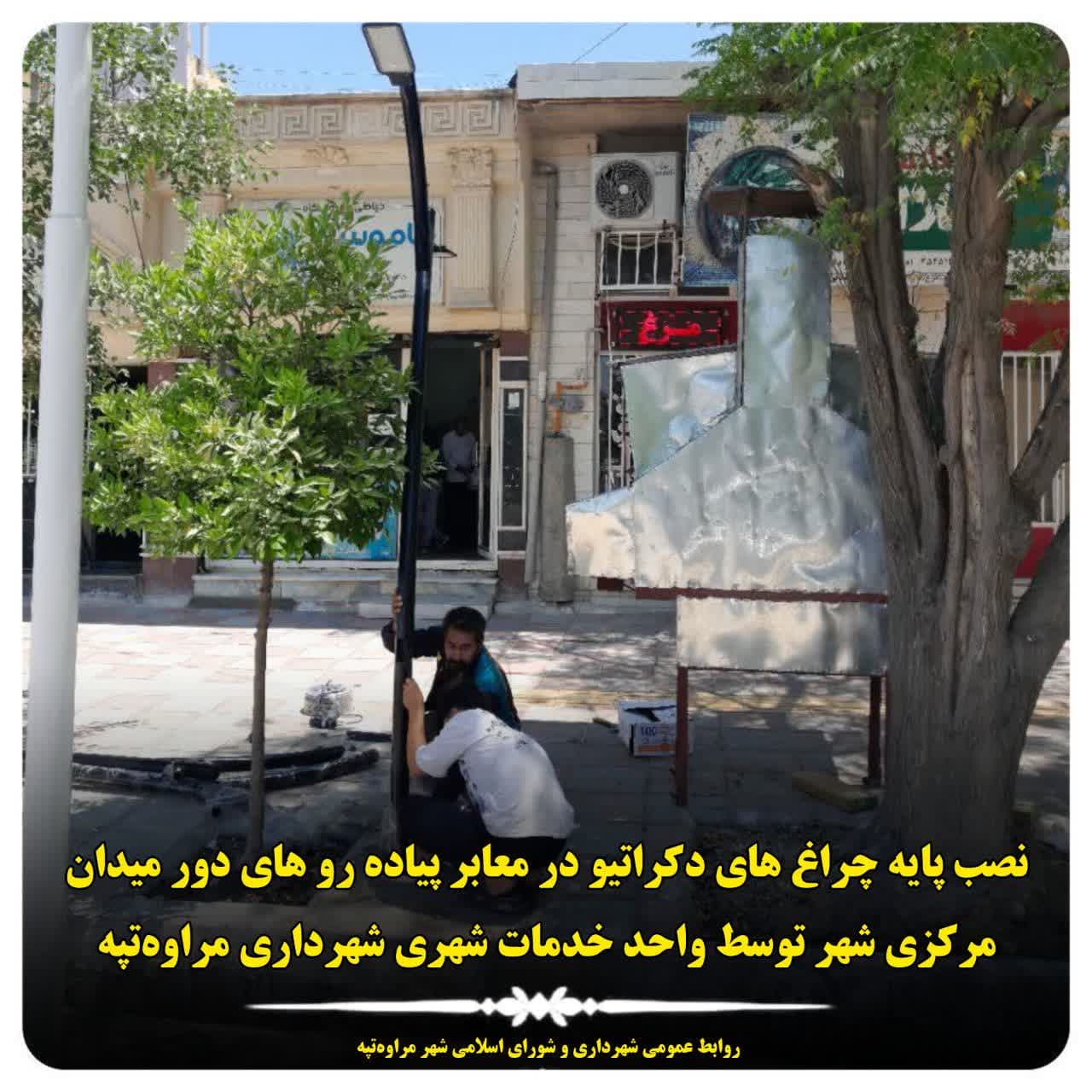 🔻نصب پایه چراغ های دکوراتیو جهت تامین روشنایی معابر دورمیدان مرکزی شهر توسط واحد خدمات شهری شهرداری مراوهتپه