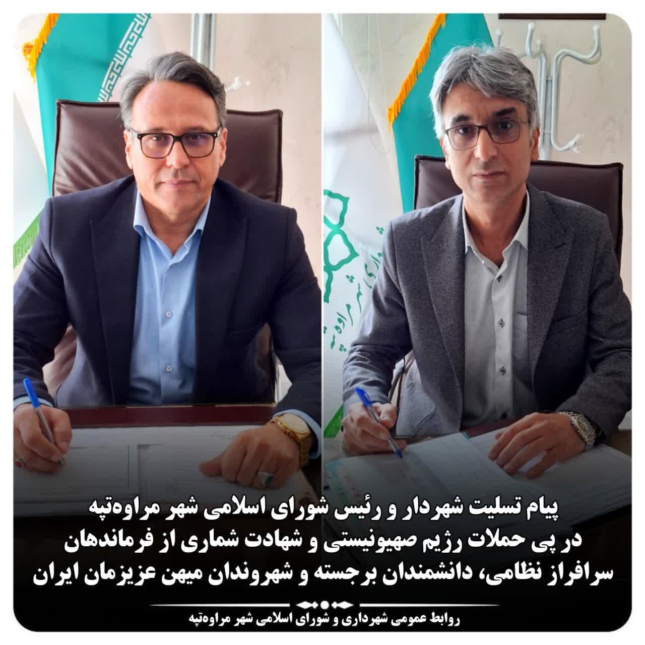 🏴پیام تسلیت شهردار و رئیس شورای اسلامی شهر مراوهتپه در پی حملات رژیم صهیونیستی و شهادت شماری از فرماندهان سرافراز نظامی، دانشمندان برجسته و شهروندان میهن عزیزمان ایران🇮🇷
