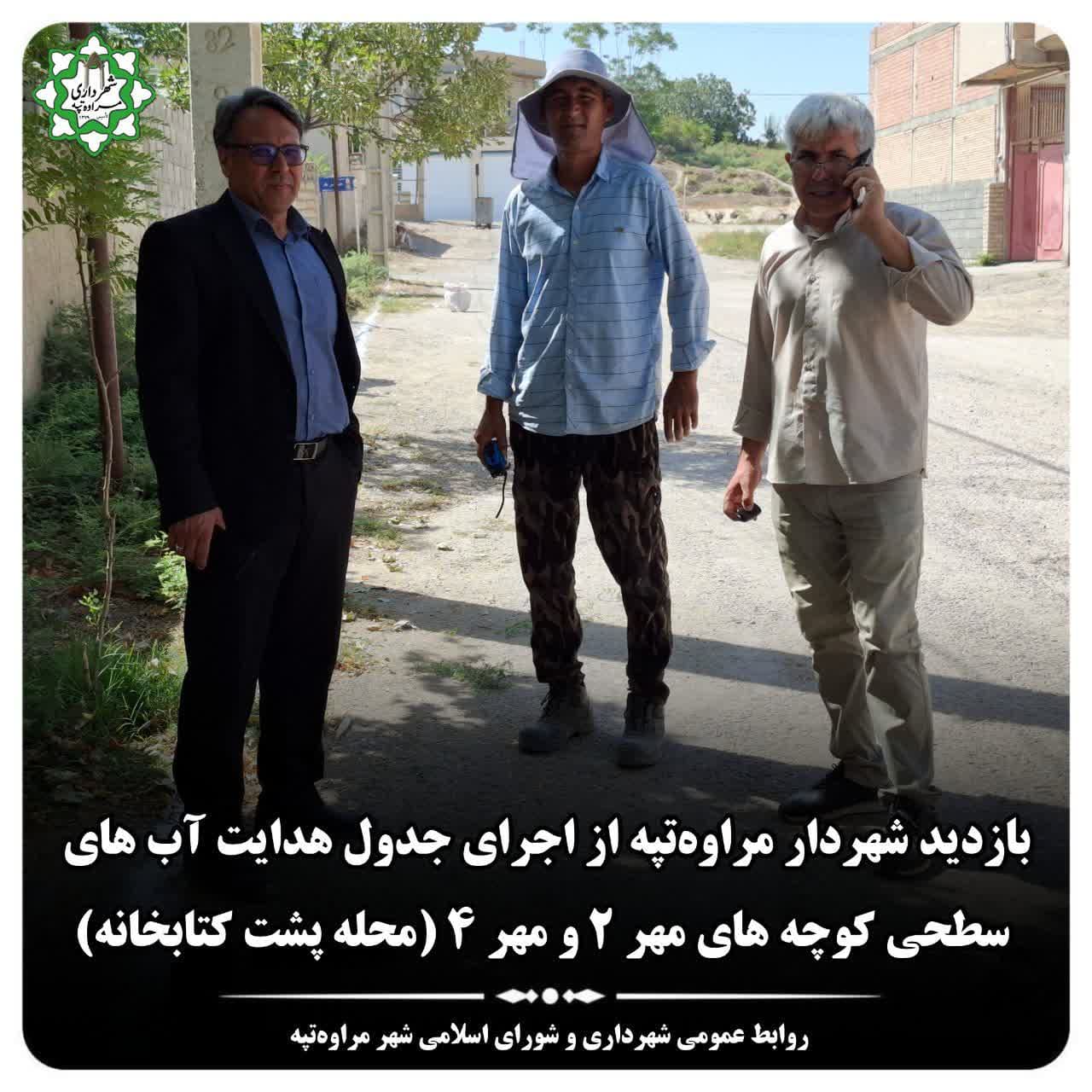 🔹️بازدید مهندس جلال الدین حاجیلی دوجی شهردار مراوهتپه بهمراه معاون عمرانی شهرداری از اجرای جدول هدایت آبهای سطحی کوچه های مهر ۲ و مهر ۴ (محله پشت کتابخانه) توسط واحد عمرانی شهرداری مراوهتپه