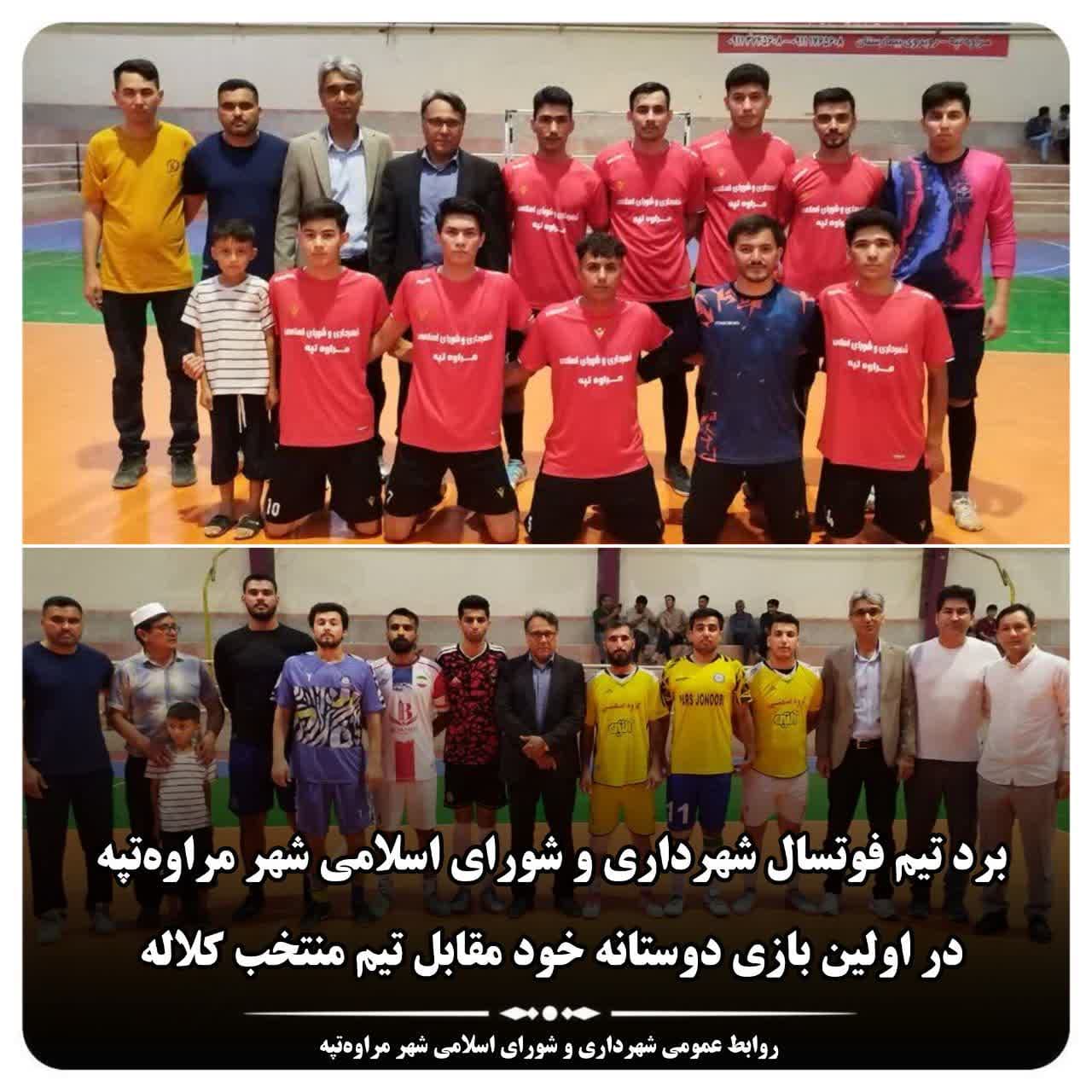🔹️ تیم فوتسال شهرداری و شورای اسلامی شهر مراوهتپه در یک دیدار دوستانه و پرشور، موفق شد تیم منتخب کلاله را در ضربات پنالتی شکست دهد. این مسابقه که با حضور تماشاگران و مهندس جلال الدین حاجیلی دوجی شهردار و مهندس موسی نازی دوجی رئیس شورای اسلامی شهر مراوهتپه در سالن ورزشی خداقلی آباد شهر مراوهتپه برگزار شد، در وقت قانونی با نتیجه مساوی ۳ بر ۳ به پایان رسید و در نهایت تیم شهرداری و شورای اسلامی شهر مراوهتپه توانست با نتیجه ۴ بر ۲ در ضربات پنالتی به برتری دست یابد.