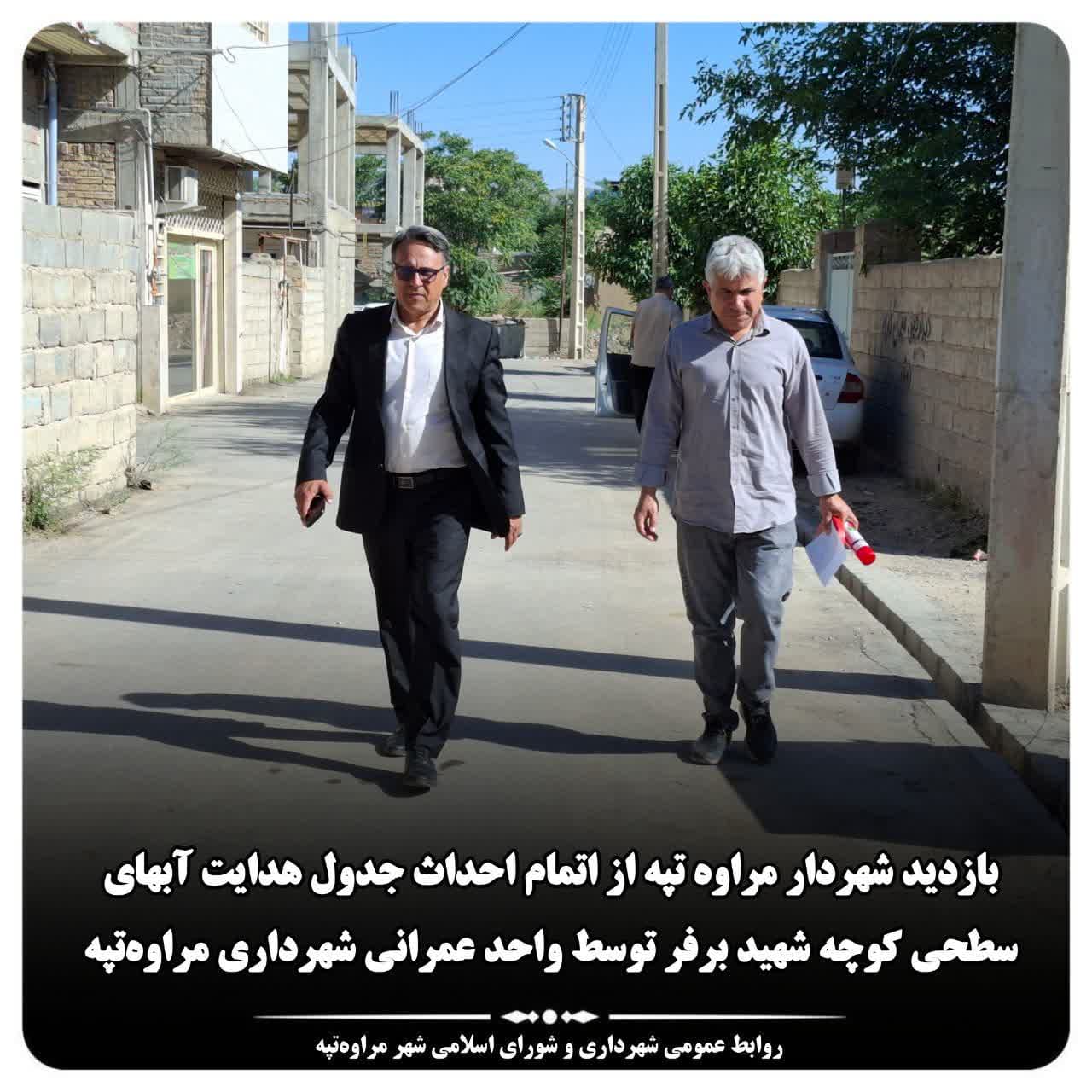 🔻بازدید مهندس جلال الدین حاجیلی دوجی شهردار مراوه تپه بهمراه مهندس محمدی معاون عمرانی شهرداری از اتمام احداث جدول هدایت آبهای سطحی کوچه شهید برفر توسط واحد عمرانی شهرداری مراوه تپه