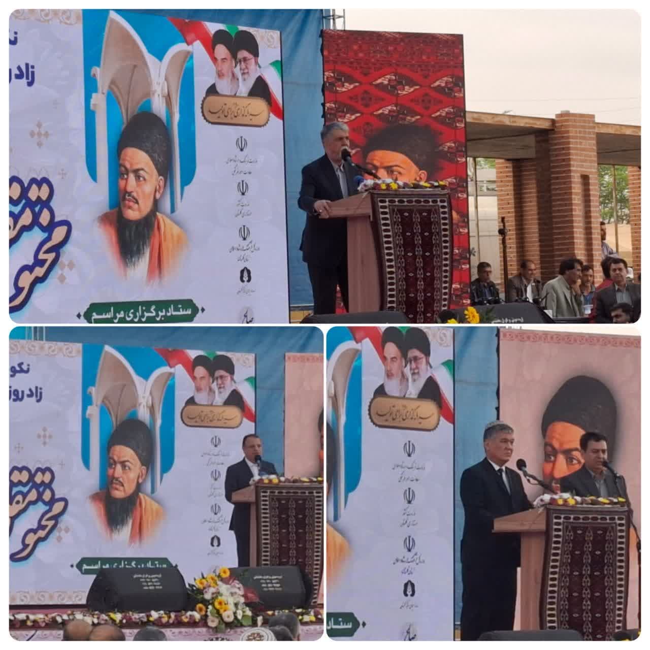 🔹اجرای موسیقی، شعر خوانی، آیین ذکر خنجر و رونمایی از کتاب خوشنویسی اشعار برگزیده مختومقلی فراغی، از جمله برنامههای ویژه این مراسم بود.