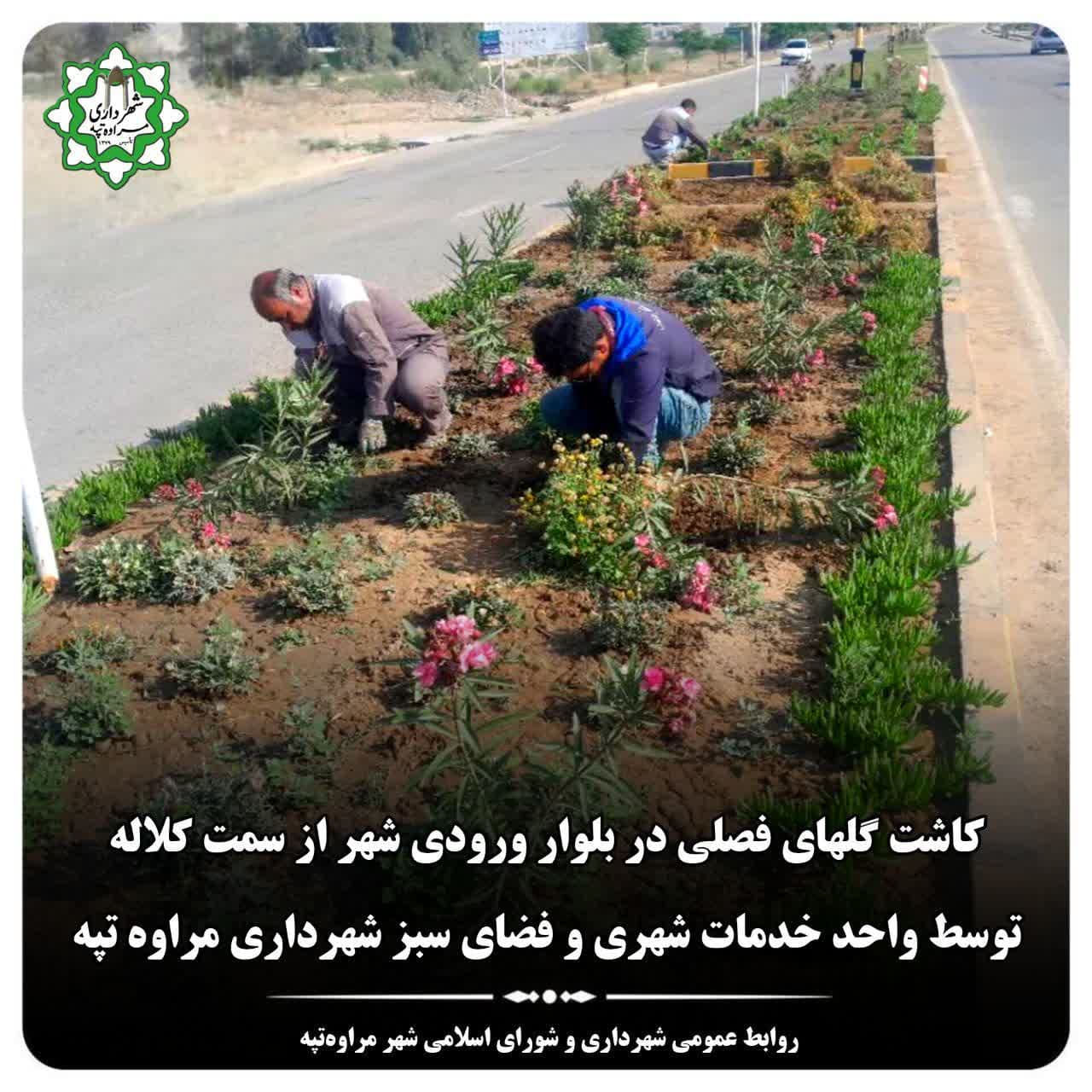 🌻 کاشت گلهای فصلی در بلوار ورودی شهر از سمت کلاله توسط واحد خدمات شهری و فضای سبز شهرداری مراوه تپه 🌸