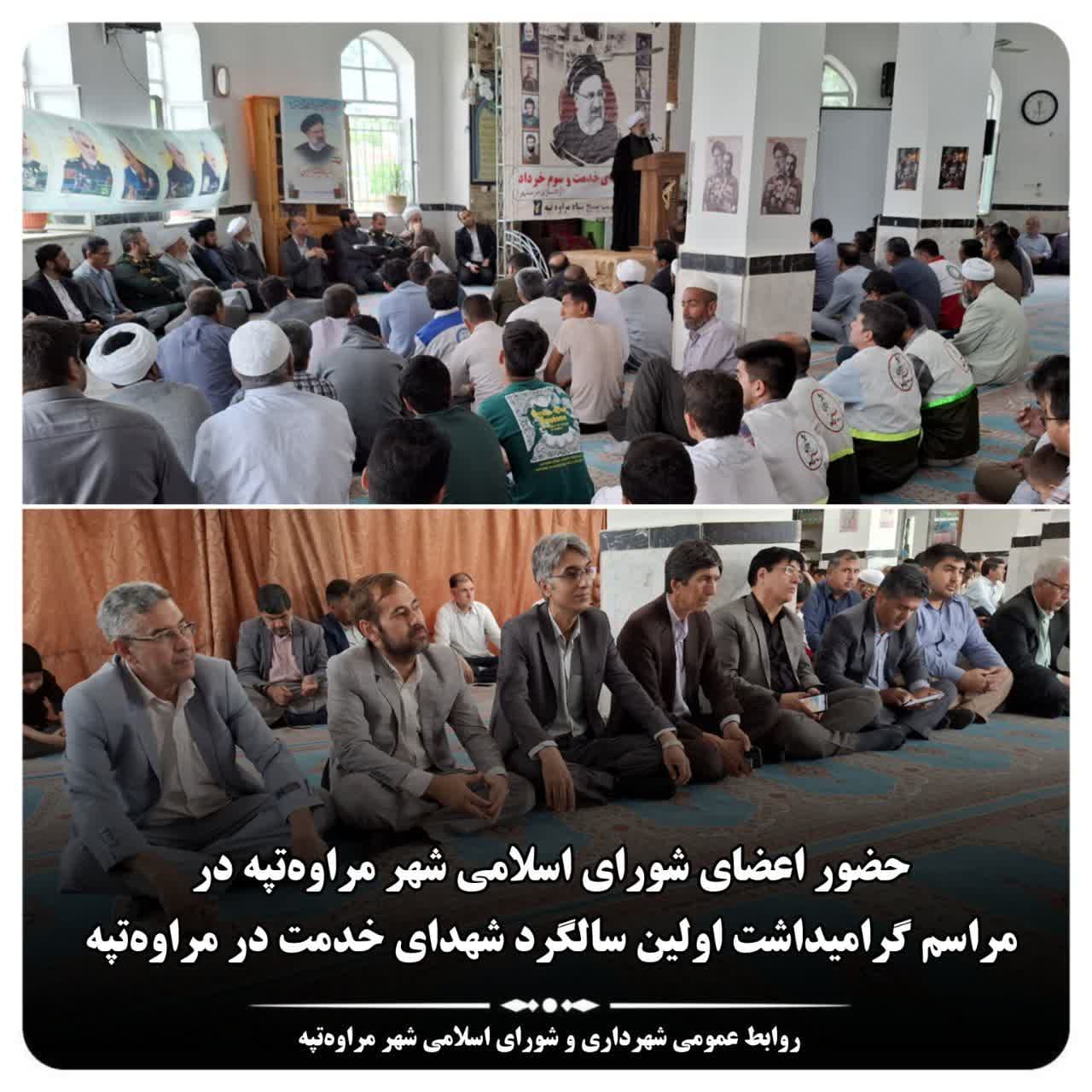 🔻حضور مهندس موسی نازی دوجی رئیس شورا ،مهندس کمال الدین حاجیلی دوجی و مهندس عبدالغفور غراوی اعضای شورای اسلامی شهر مراوهتپه در مراسم گرامیداشت اولین سالگرد شهدای خدمت و شهید جمهور آیت الله سید ابراهیم رئیسی در مسجد صاحب الزمان(عج) شهر مراوهتپه