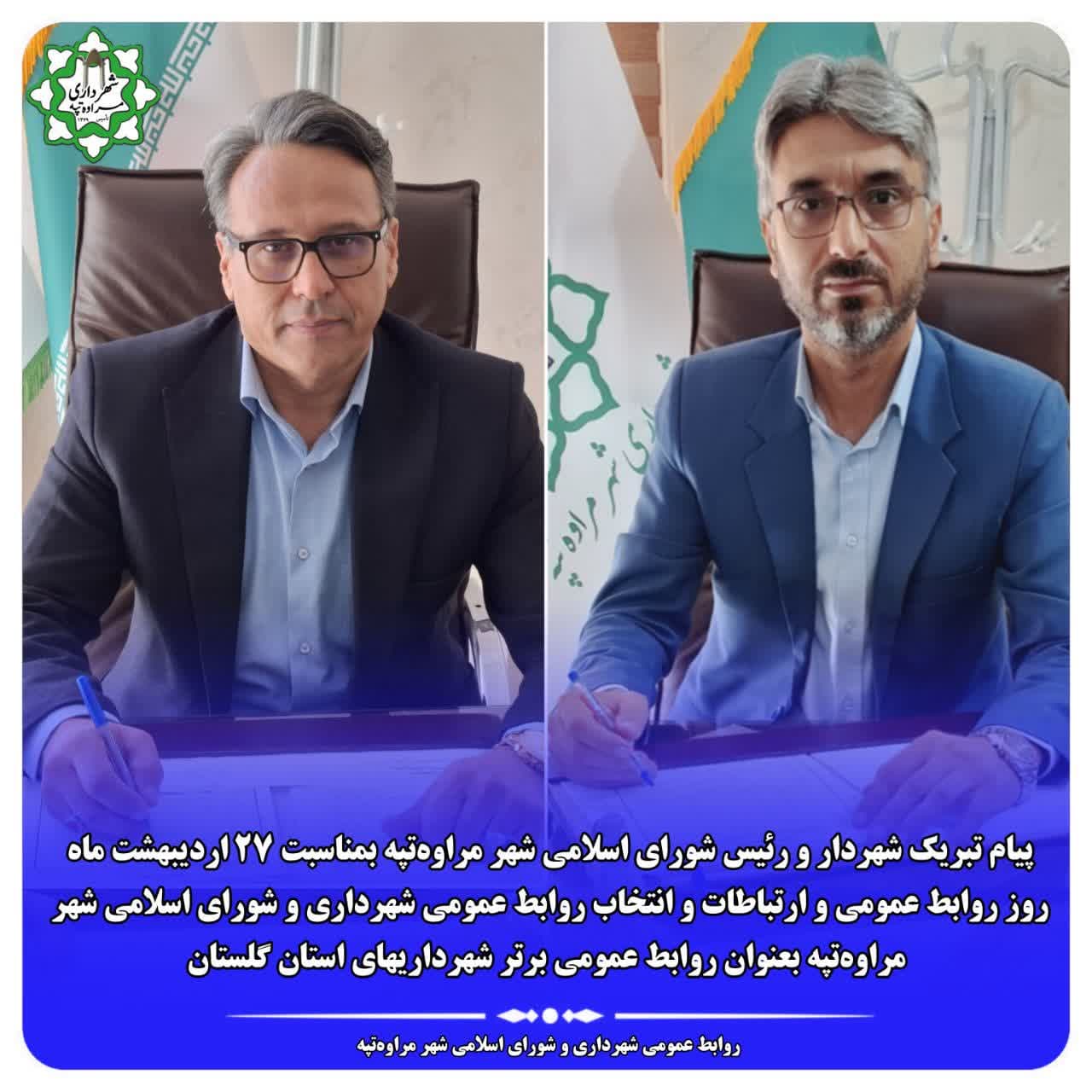 روابط عمومی شهرداری و شورای اسلامی شهر مراوهتپه ، روابط عمومی برتر شهرداری های استان گلستان شد.