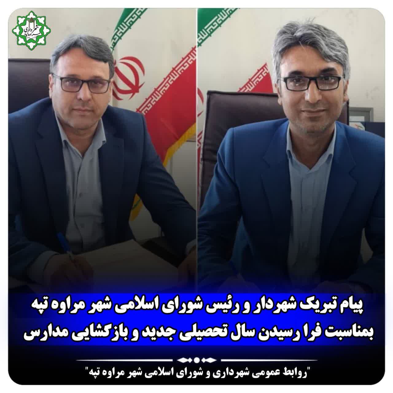 اینجانبان شروع سال تحصیلی جدید را به تمامی اصحاب تعلیم و تربیت ،اساتید ،دانشجویان و دانش آموزان پرتلاش شهر مراوه تپه که با همت و تلاش خود در راستای تربیت نیروهای انسانی عالم ،خلاق و پایبند به ارزش ها و اخلاق،گامهای موثری بر میدارند،تبریک و تهنیت عرض می نماییم.