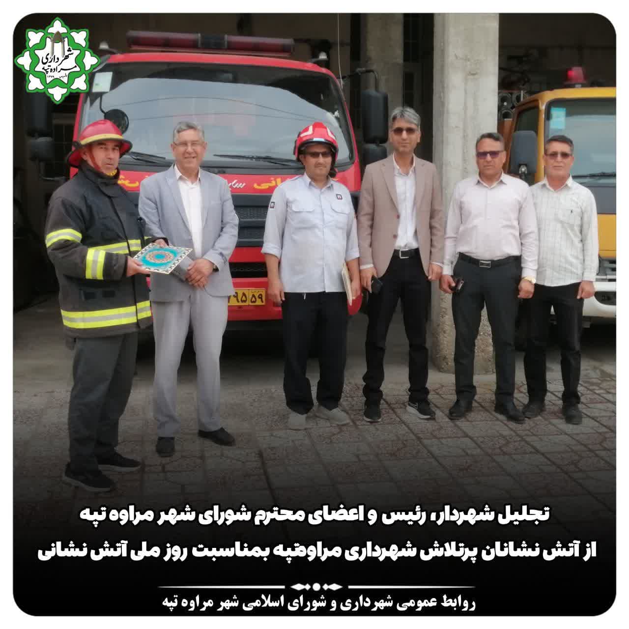 🔻امروز هفتم مهرماه، مهندس جلال الدین حاجیلی دوجی شهردار، مهندس موسی نازی دوجی رئیس ومهندس حاج کمال الدین حاجیلی دوجی نائب رئیس شورای اسلامی شهر مراوه تپه با حضور در آتش نشانی شهرداری از آتش نشانان پرتلاش و فداکار بمناسبت روز ملی آتش نشانی و خدمات ایمنی تقدیر و تجلیل نمودند.